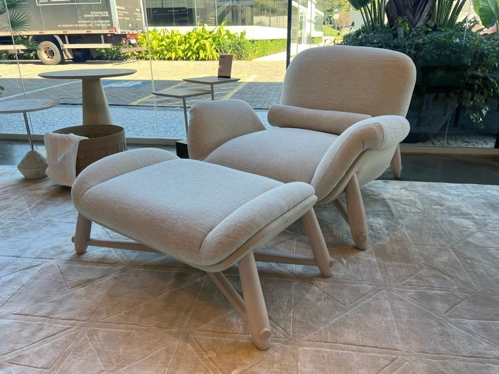 Material: Base em madeira, encosto e assento estofados e costas em PU.